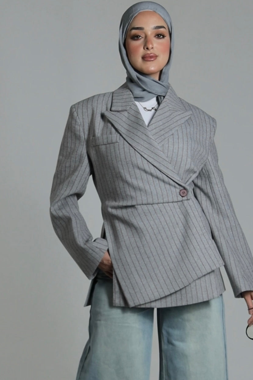 Pinstripe Wrap Blazer