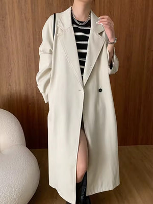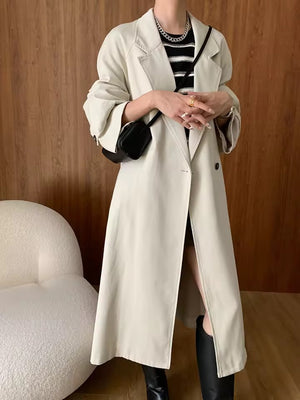 Effortlessly elegant, this oversized cream trench coat combines a relaxed fit with timeless style — perfect for layering and elevating any outfit.
