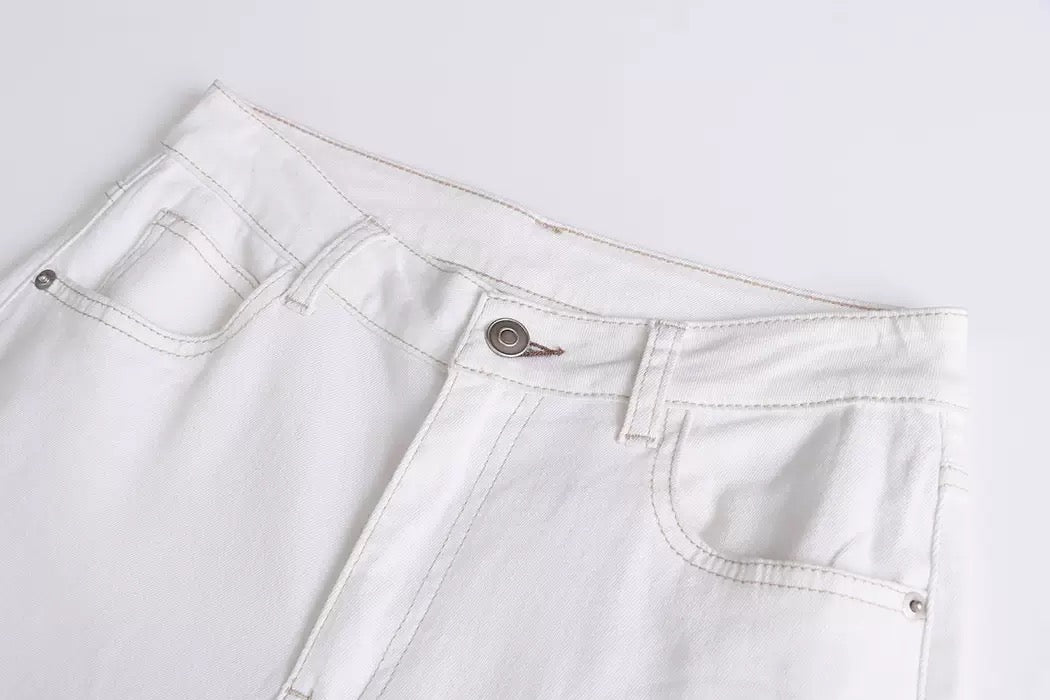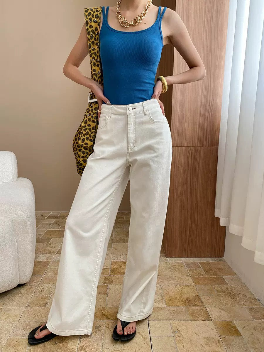 Effortlessly chic wide-leg jeans in an elegant off-white shade. Designed with a high waist and relaxed fit for all-day comfort and style — perfect for pairing with a fitted top or blazer for a modern, casual look.