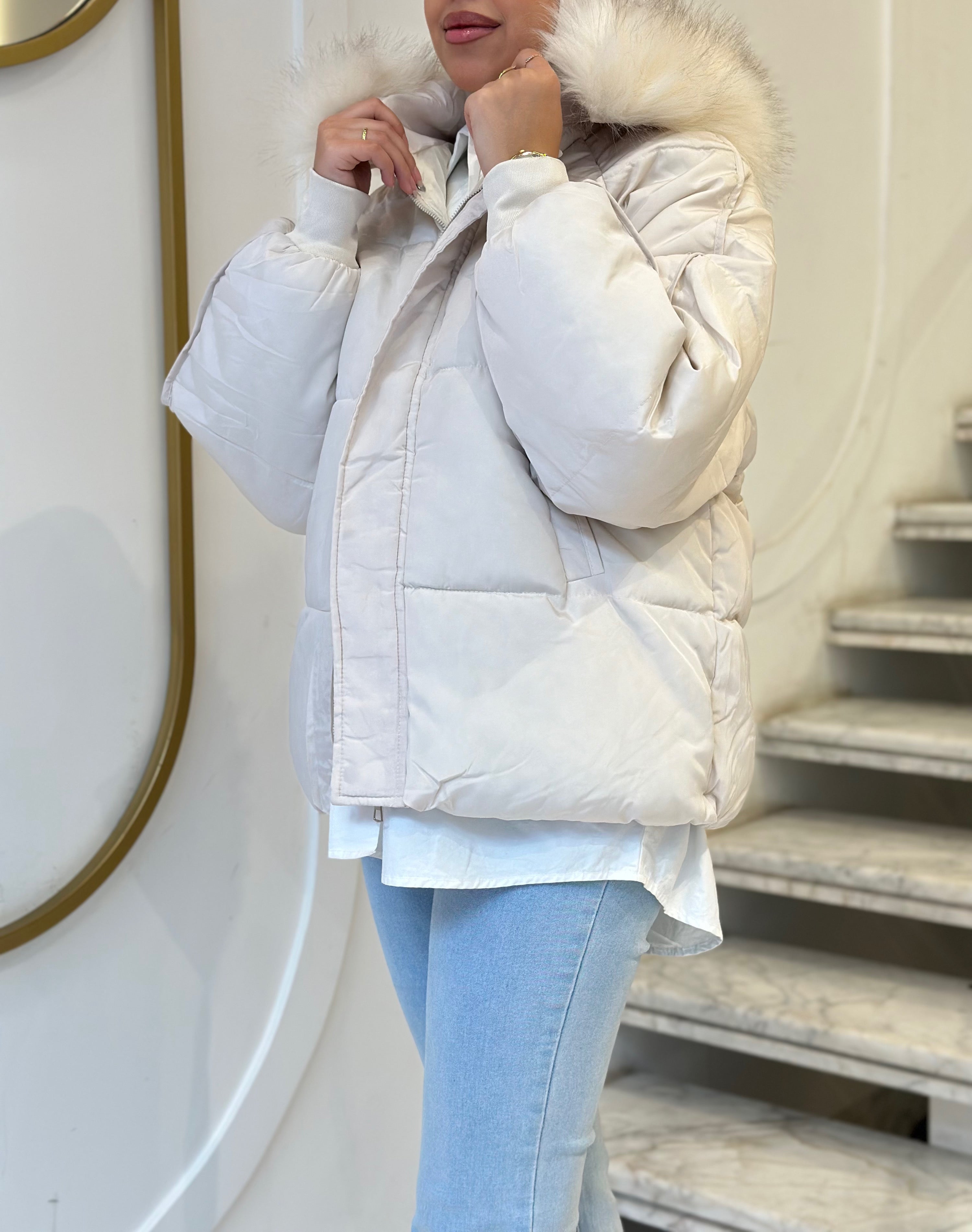 A stylish padded jacket with a modern design that provides warmth and comfort during cold weather. Features a relaxed fit for easy everyday wear, made from a soft and lightweight fabric. Easy to style with jeans or casual trousers, perfect for daily looks and outings.