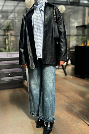 Belted leather jacket
