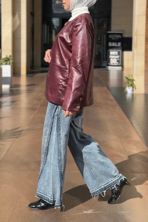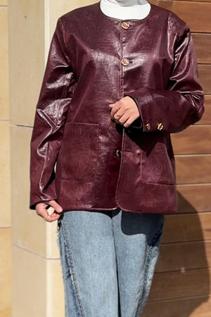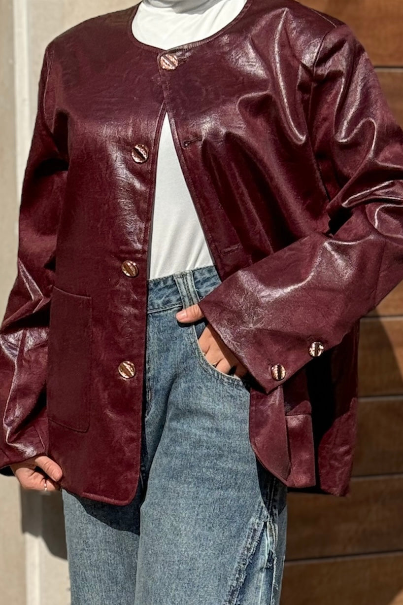 Elegant leather jacket with front pockets and button details for a chic everyday look.