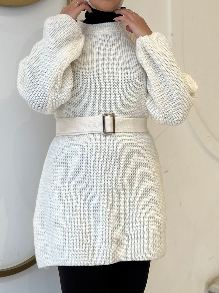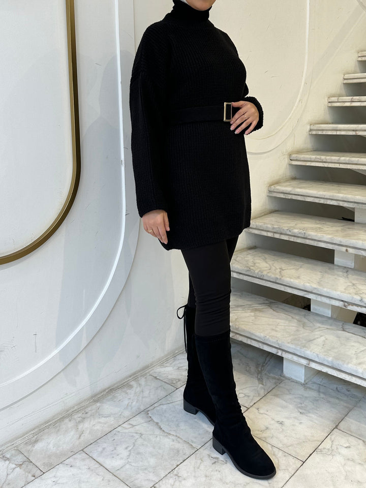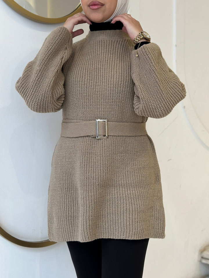 A cozy knitted tunic with a stylish belt design. Soft, warm, and perfect for everyday winter looks.