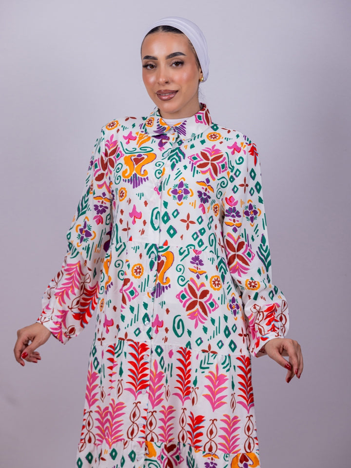 BOHO MAXI DRESS WITH COLORFUL ETHNIC PRINT