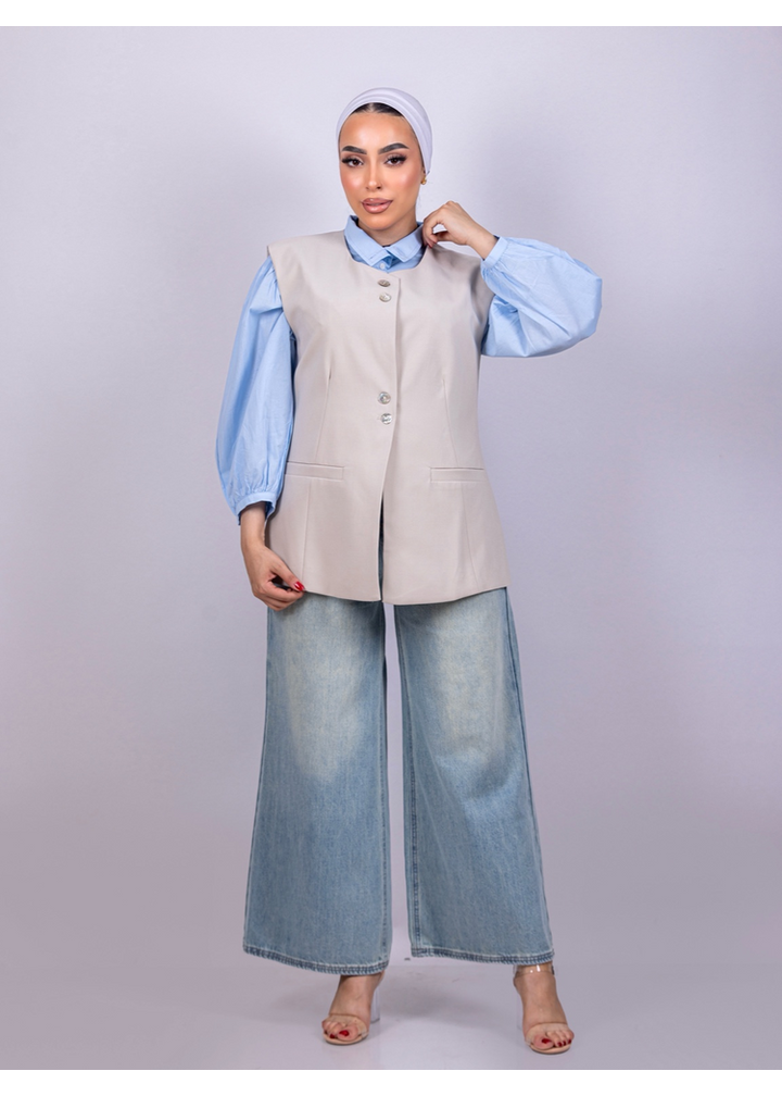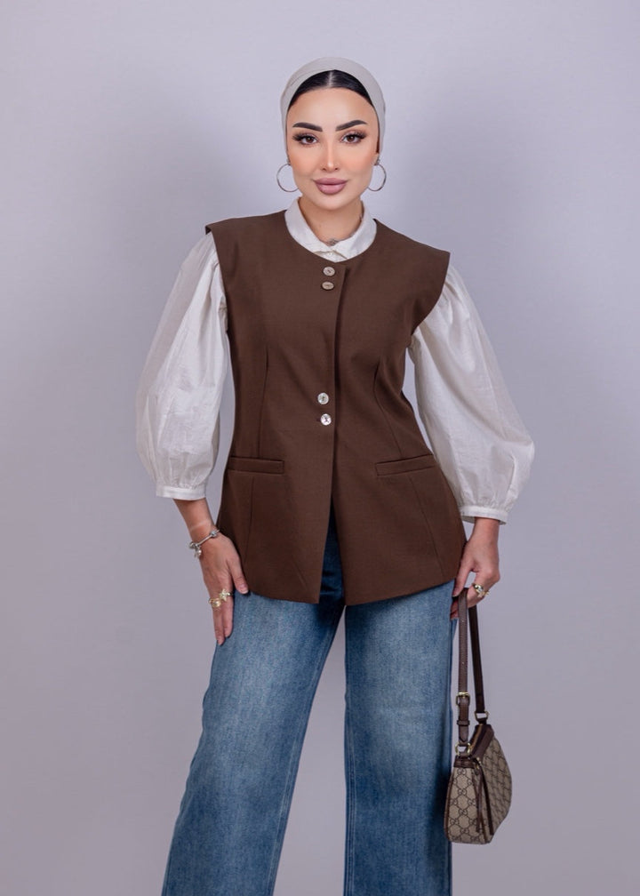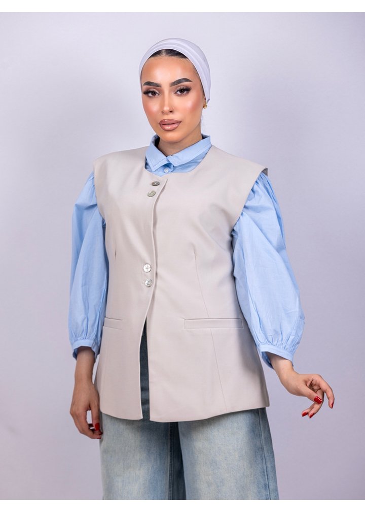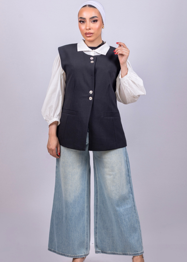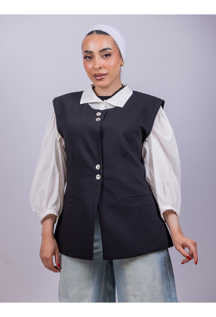 FORMAL VEST WITH CONTRASTING BUTTONS FINISHED WITH SLEEK SIDE POKKET