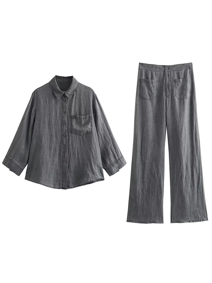 CASUAL LINEN GREY SUIT- ZIPPER PANT AND SHIRT