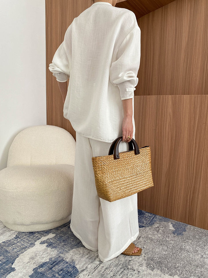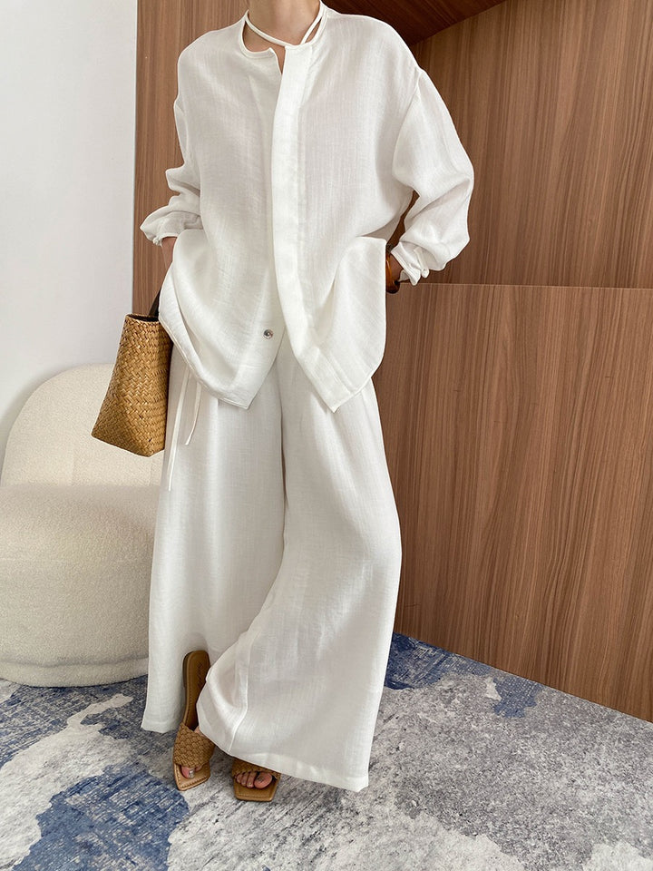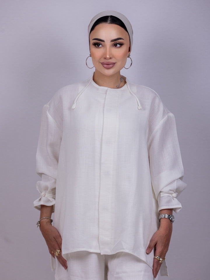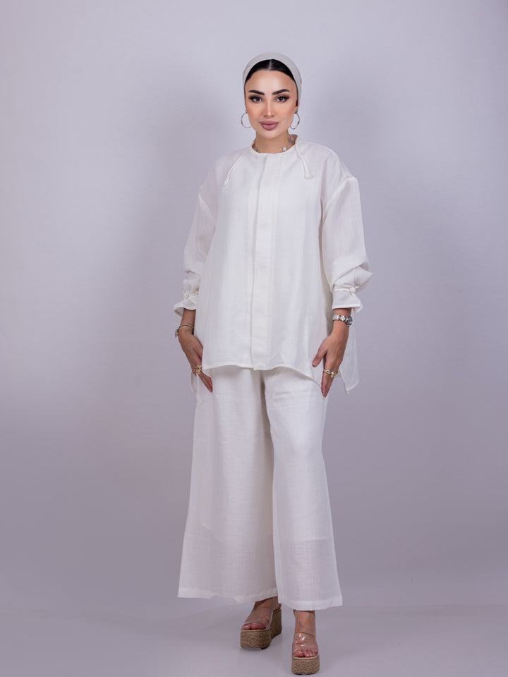 LINEN BLEND RELAXED SUIT SET WITH PANT FULLY LINED.