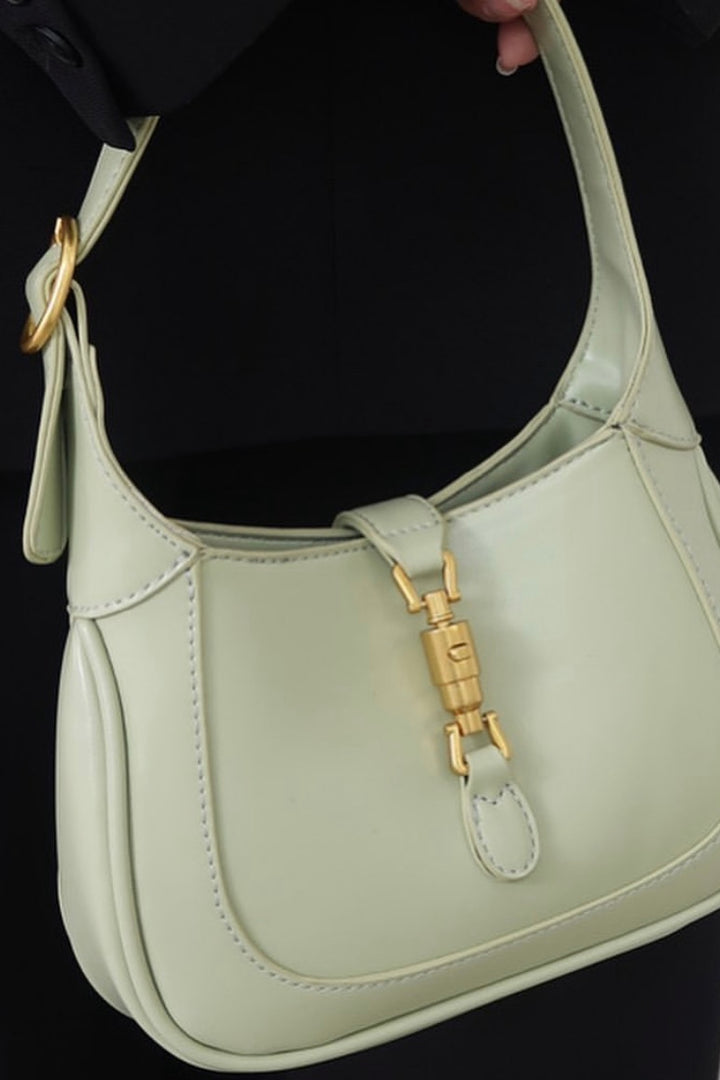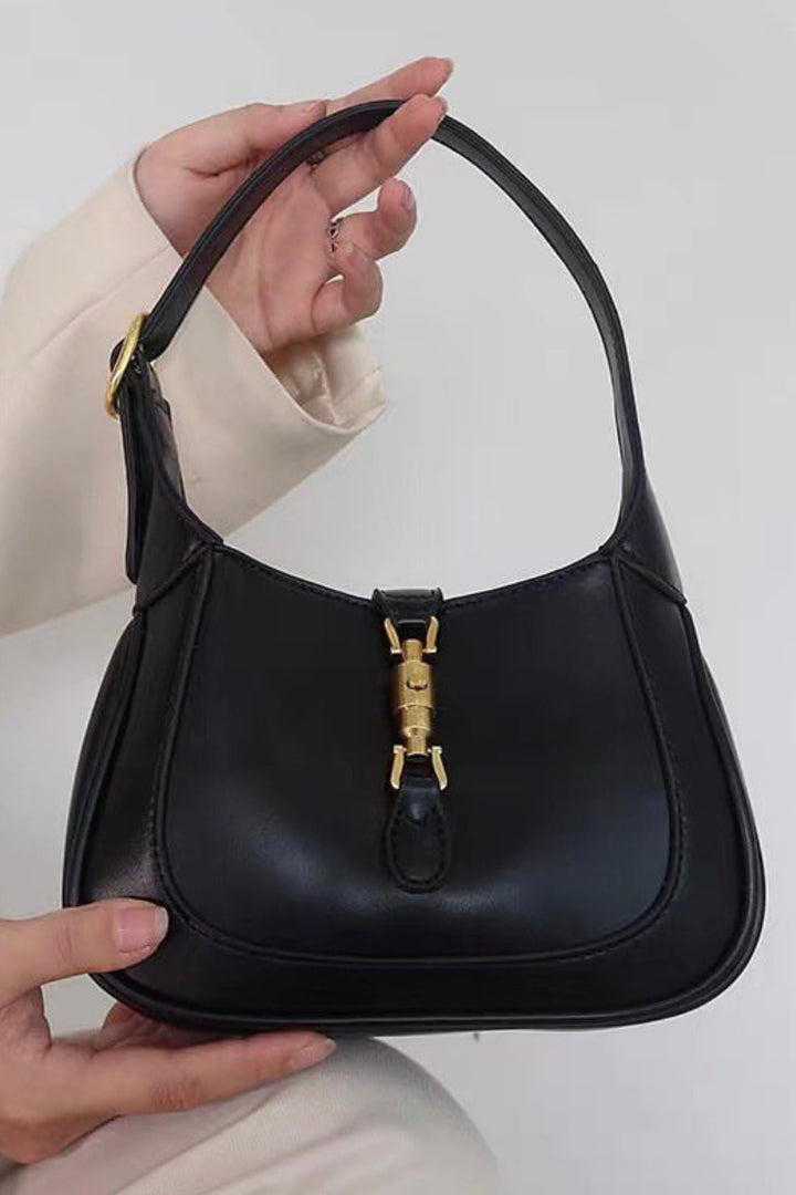 Elegant mini shoulder bag with a sleek silhouette and gold-tone hardware, perfect for adding a touch of sophistication to any outfit.