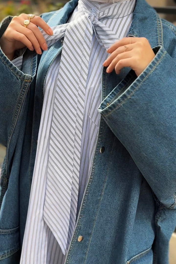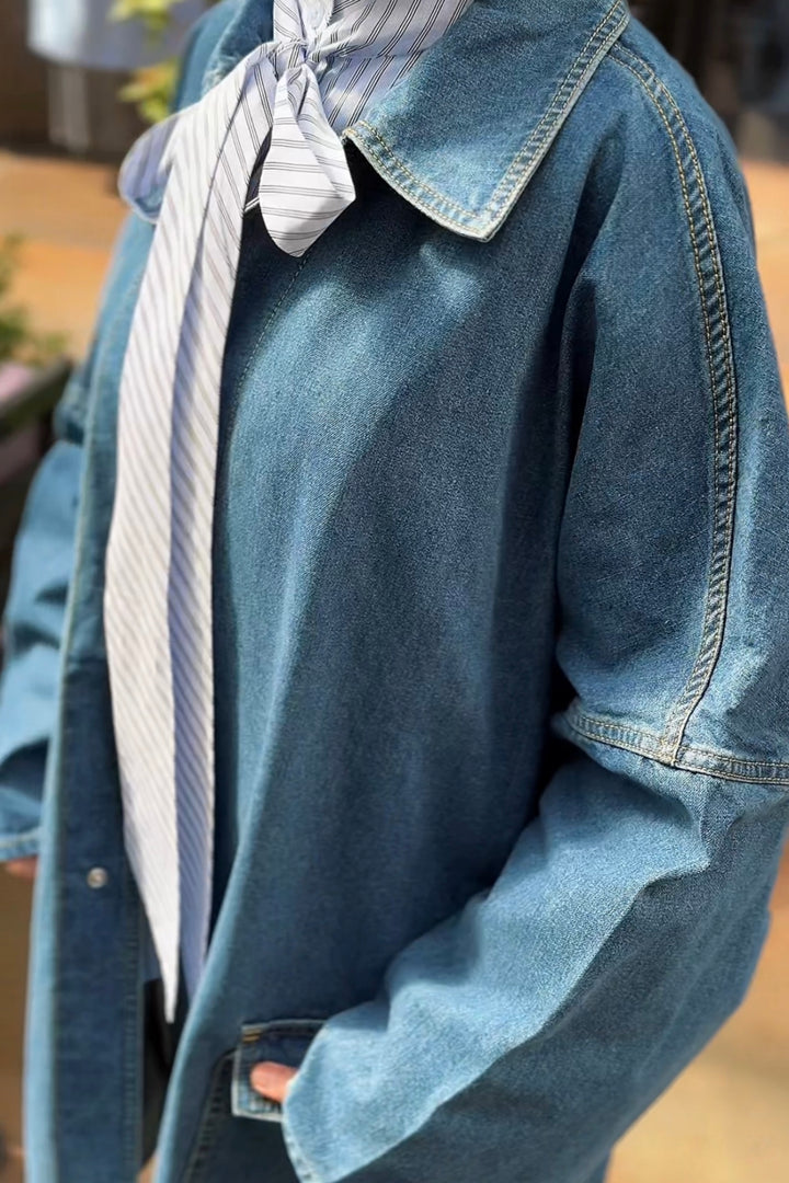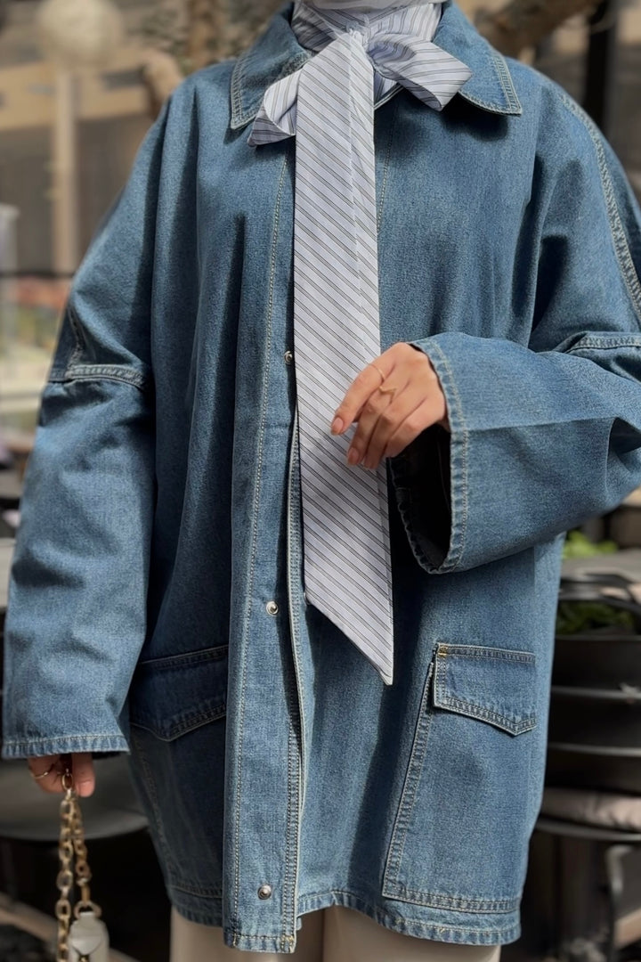 Classic oversized denim jacket with front pockets and relaxed fit — a timeless layering piece for effortless style.