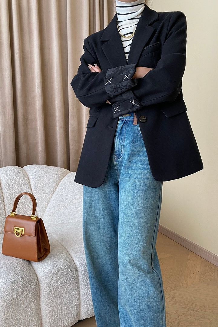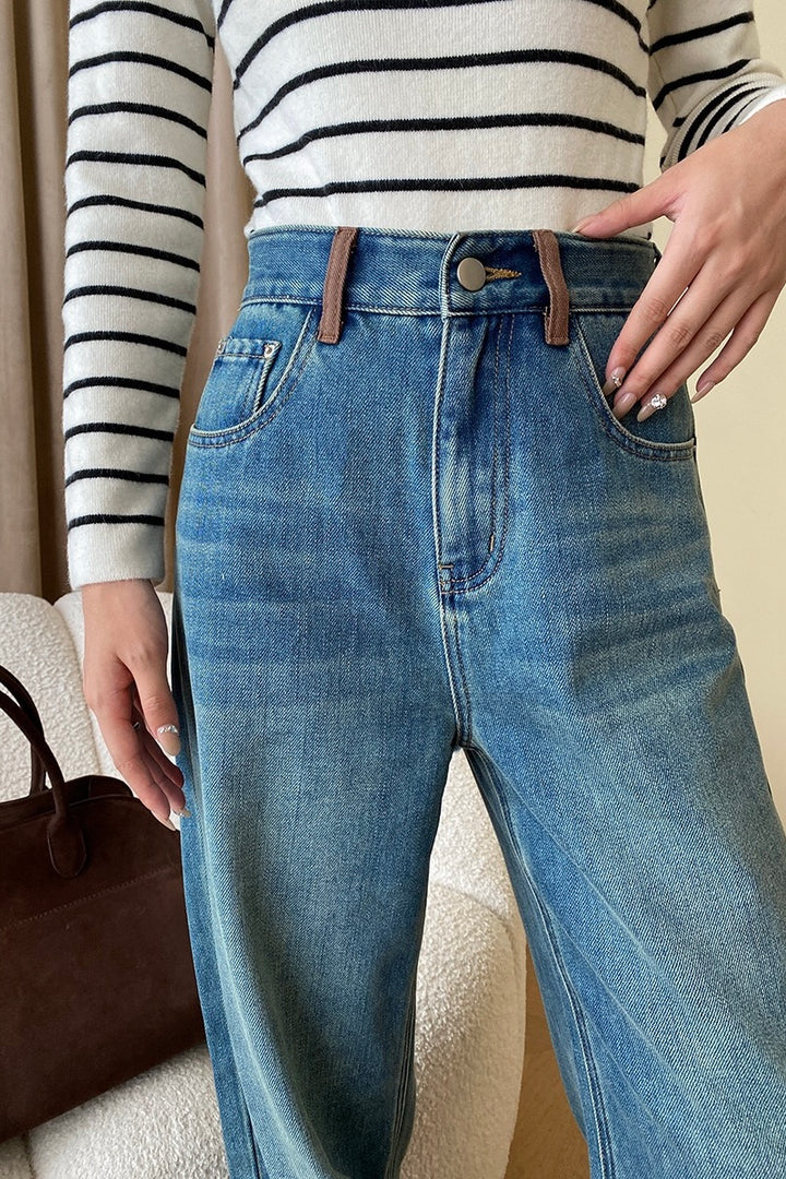 Timeless high-rise jeans with a relaxed wide-leg cut, offering a chic and versatile look perfect for both casual and smart outfits.