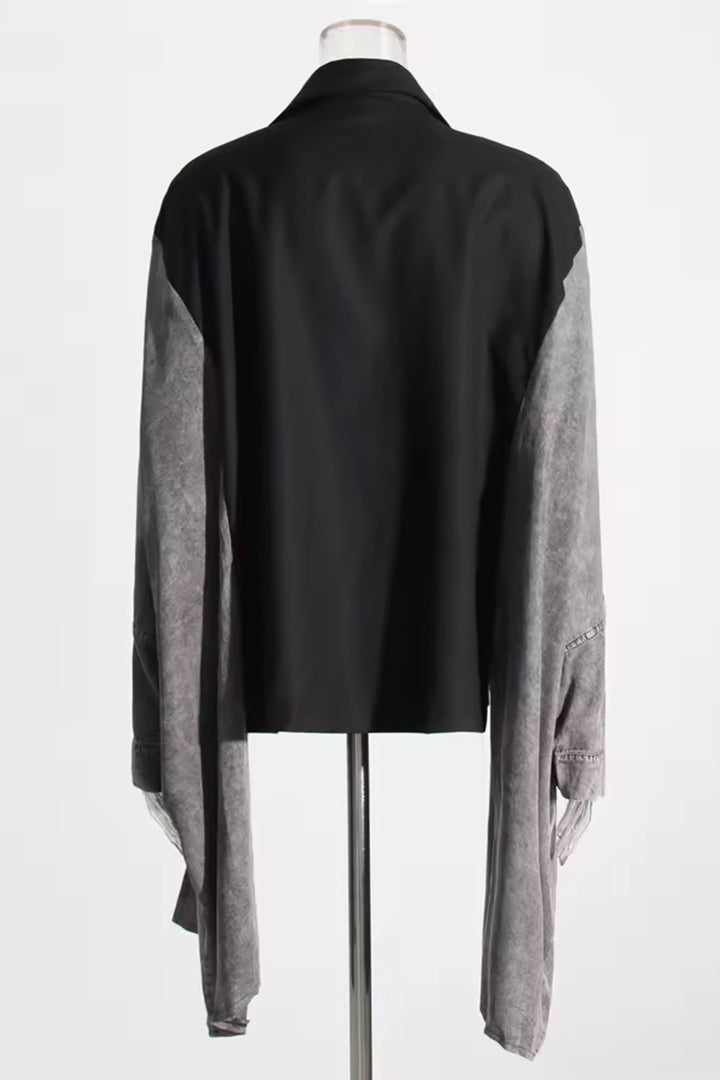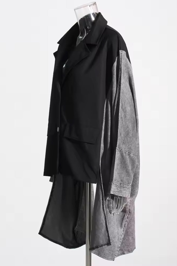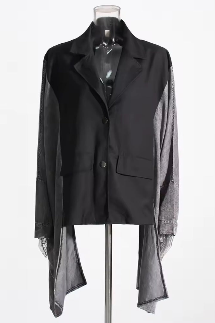 TWO-TONE OVERSIZED BLAZER WITH DENIM SLEEVES